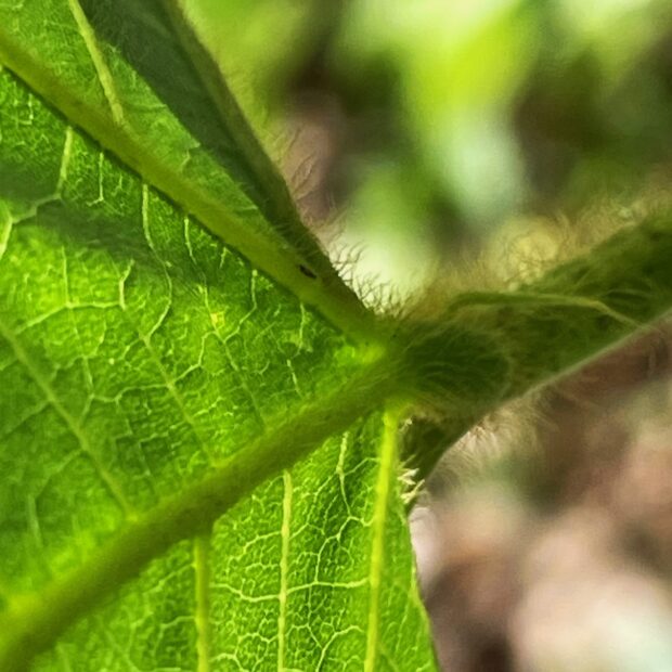 • 葉柄に、 たくさんの毛が生えている。