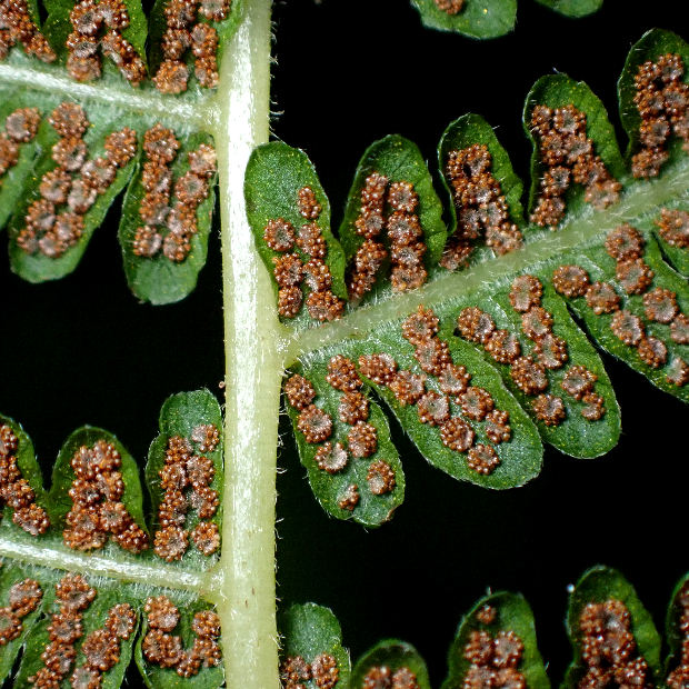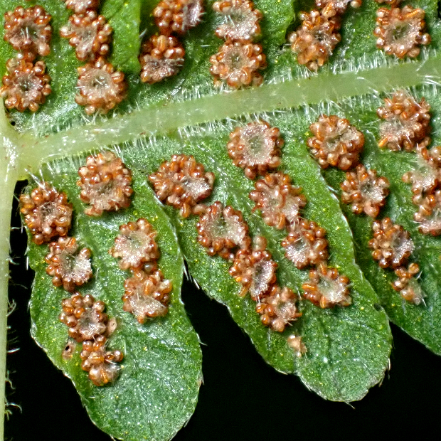 涼しい山地に生えるシダ。 葉は細長くて、 下部はふつう縮まります。 とても小さくて見にくいですが、 胞子のう群を保護する包膜に毛が生えていることも特徴です。