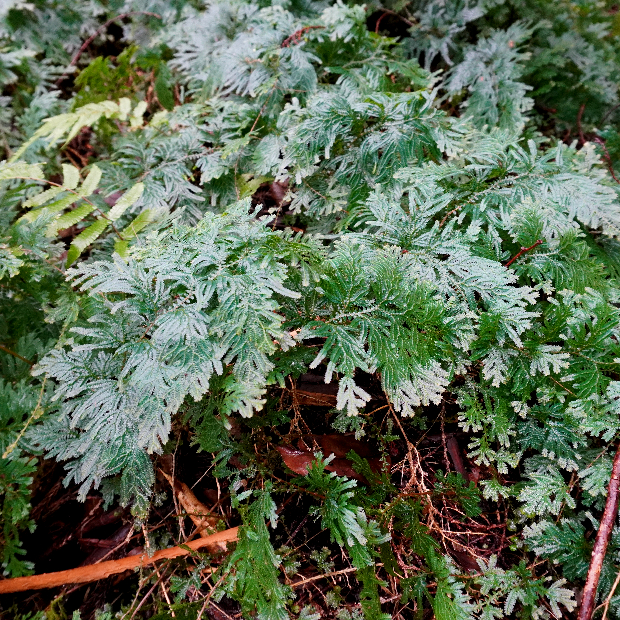 紺色の輝く葉がとてもきれいな中国原産のシダ植物です。 日本には明治初期に入ってきたといわれており、 栽培株から野生化したものが日本の暖かい地域でよく見られます。 園芸の世界ではレインボーファンと呼ばれて親しまれています。