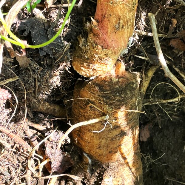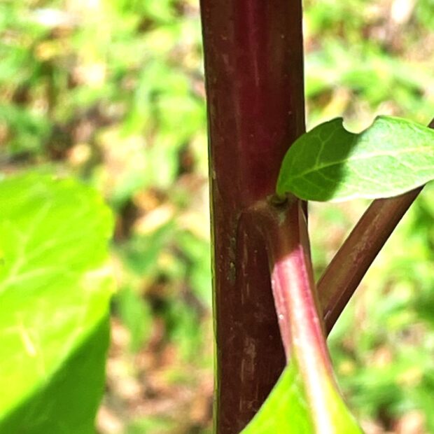 枝を四方に張り、 大きな株となります。 秋になるとブドウに形も色も似た果実を付けます。 背丈が2m以上になるので樹木と誤解されやすいですが、 草本です。