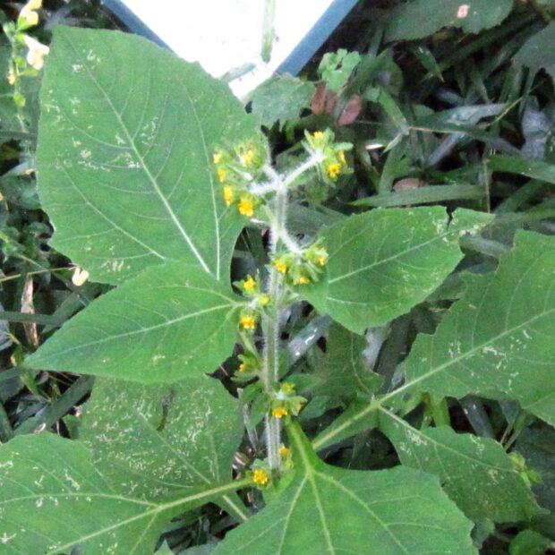 庭一面にはびこり、 ひっつき虫として嫌がられていますが、 中国では全草を薬用にするようです。 動脈硬化や脳溢血の予防などに役立つとして、 栽培を推奨する市町村もあります。 また、 葉をゆでて水に曝し、 食用にします。