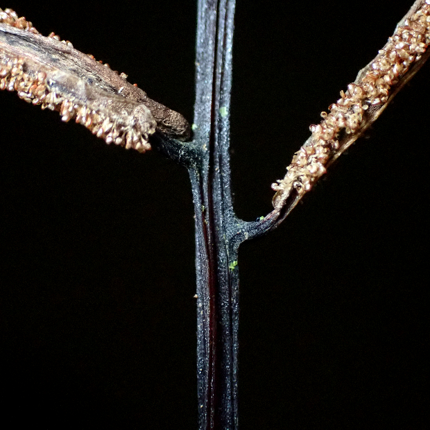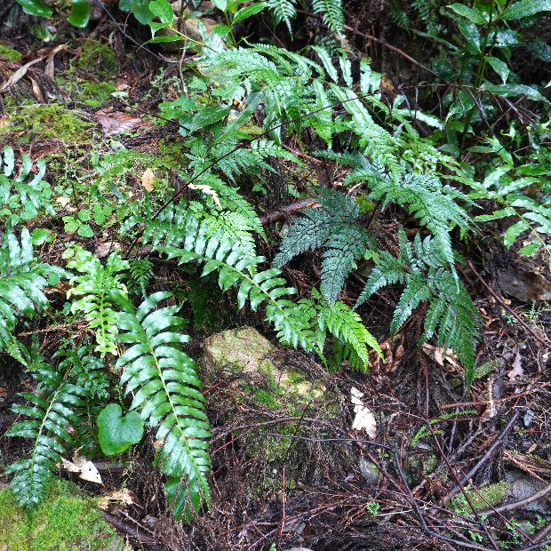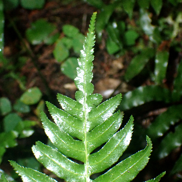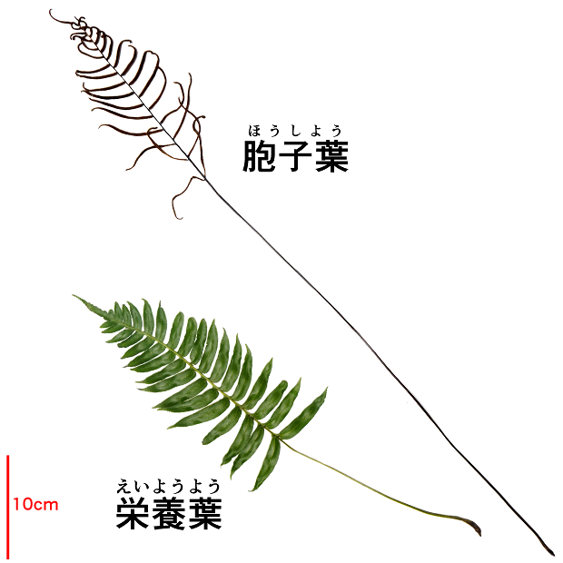 太平洋側の暖かい地域に多いシダです。 キジノオシダに似ていますがより小さめで、 光合成をする葉の先はだんだんと細くなり、 羽片基部は葉軸に長くつきます。 高砂は日本で用いられていた台湾の古い呼び名です。