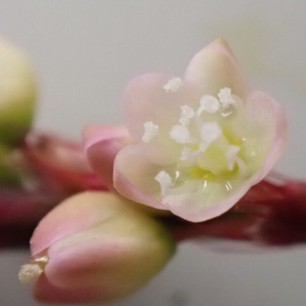 ハナタデの名とは異なり、 地味な感じ、 それもそのはず、 花は花でも梅の花に似る花です。