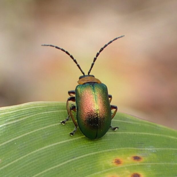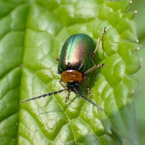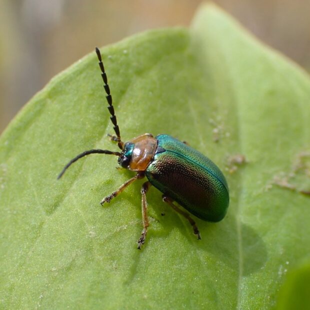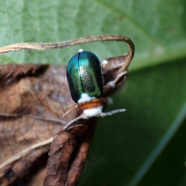 メタリックグリーンの美しいハムシ
