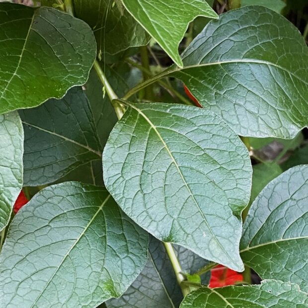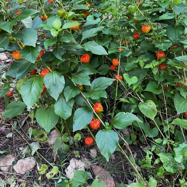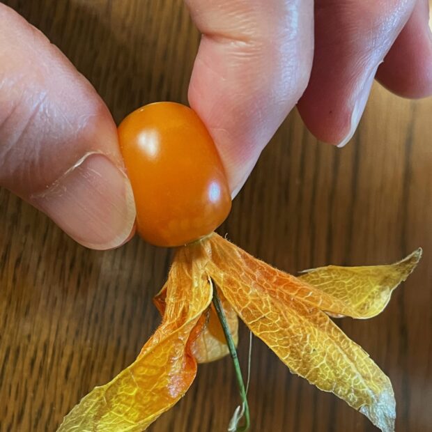 黄色い花が咲く頃、 全国で「ほおずき市」が開催されます。 花後、 ガクの部分が発達して、 果実を包み袋状になります。