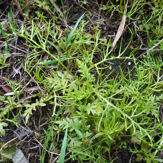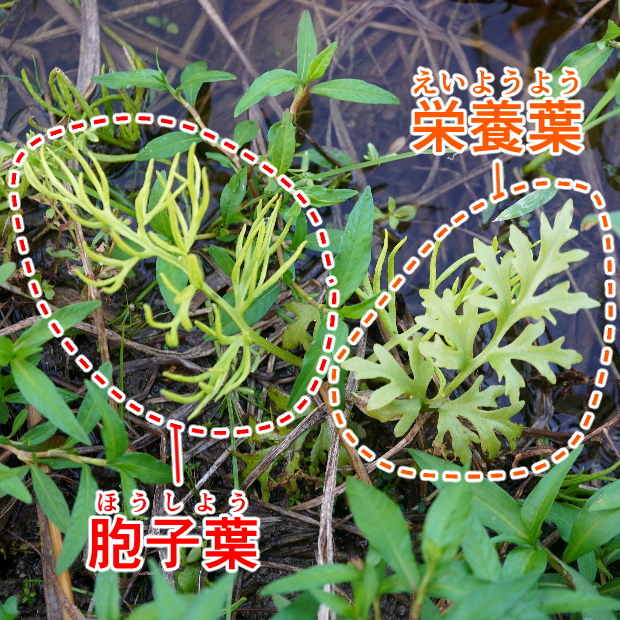 稲刈り後の田んぼで見ることが多い水生シダ。 葉は黄緑色でみずみずしく、 やわらかいです。 鹿の角のような葉から胞子を飛ばします。 ワラビとは別のグループのシダですが、 食用にされることもあるのだとか。