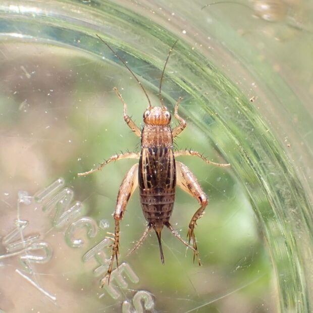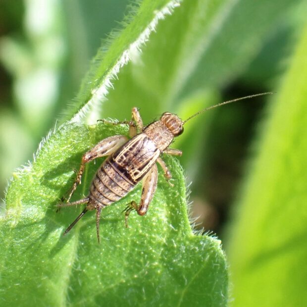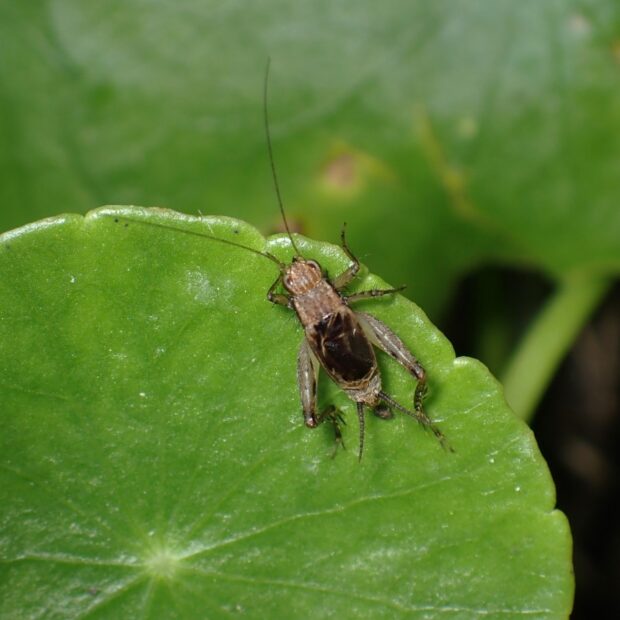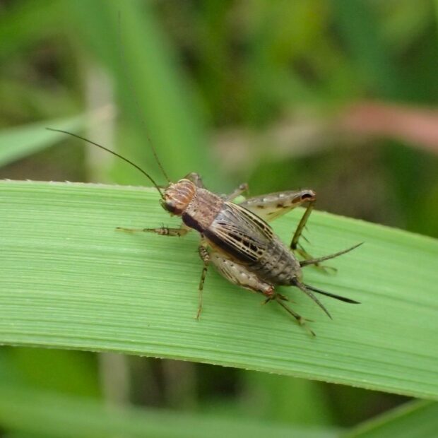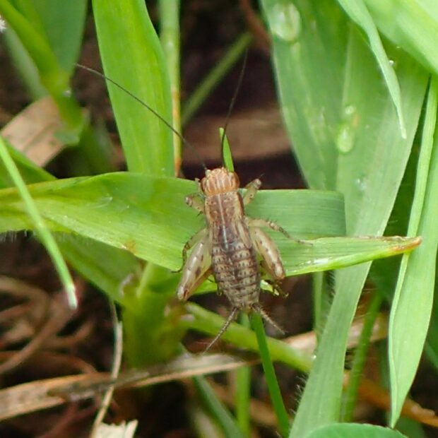草地にいるヒバリモドキ科の仲間。 都心部の公園の芝生や庭などで普通に見られます。 長く続けて「ジーー」と鳴き、 時々「ジーッジーッ」と不規則に鳴きます。