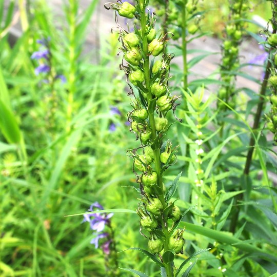 若芽や茎を含む全草に、 有毒なアルカロイドのロベリン(Lobeline)が含まれます。 ロベリンはかつて医薬品として使用されましたが、 頭痛、 嘔吐、 下痢、 呼吸困難、 心臓麻痺を引きおこして死亡に至るなど毒性が強いため、 現在は使用されていません。 観賞用として栽培されることもあり、 注意が必要です。