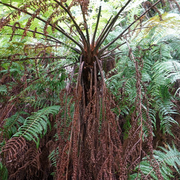 見た目は木ですが、 幹は不定根が集まってできたもので、 年輪をつくる成長(肥大成長)をしません。 このことから木ではなく「木生シダ」として分けられています。