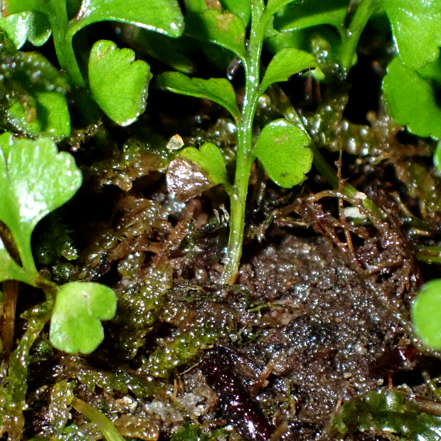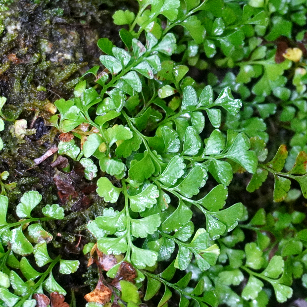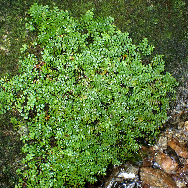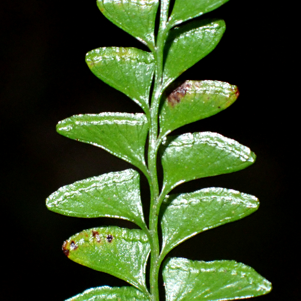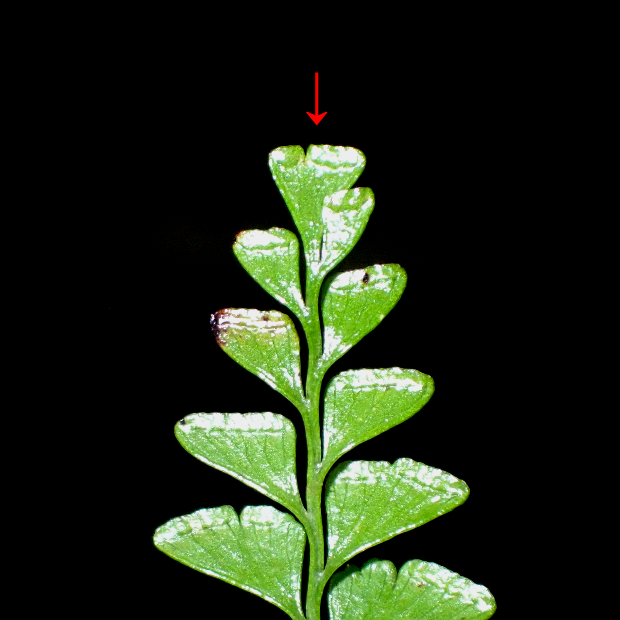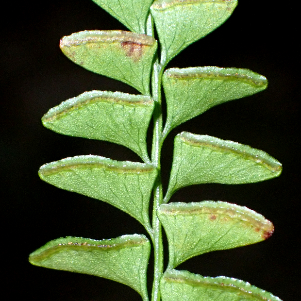 暖かい地域の渓流近くの岩場に群生するかわいらしいシダ。 近縁のホングウシダよりも小さくて、 胞子のう群はふつう葉のフチに長くつきます。 名前は西日本に多いホングウシダの意味ですが、 そもそもホングウシダ科のほとんどは日本では西を中心に分布します。