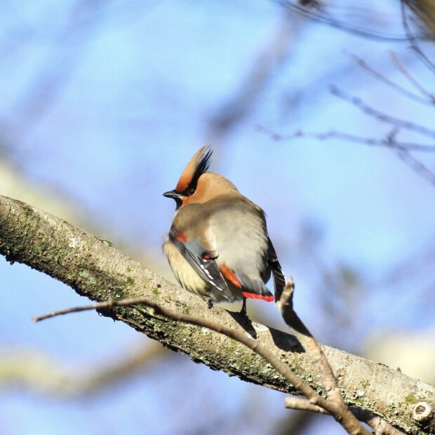 雌雄はほぼ同じ色で、 頭には冠羽があります。 尾の先が赤色で、 類似種のキレンジャクと見分けることができます。