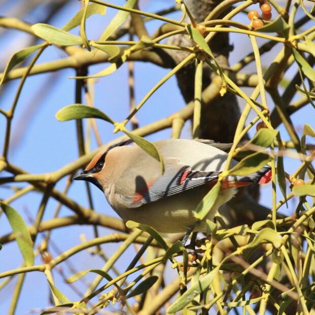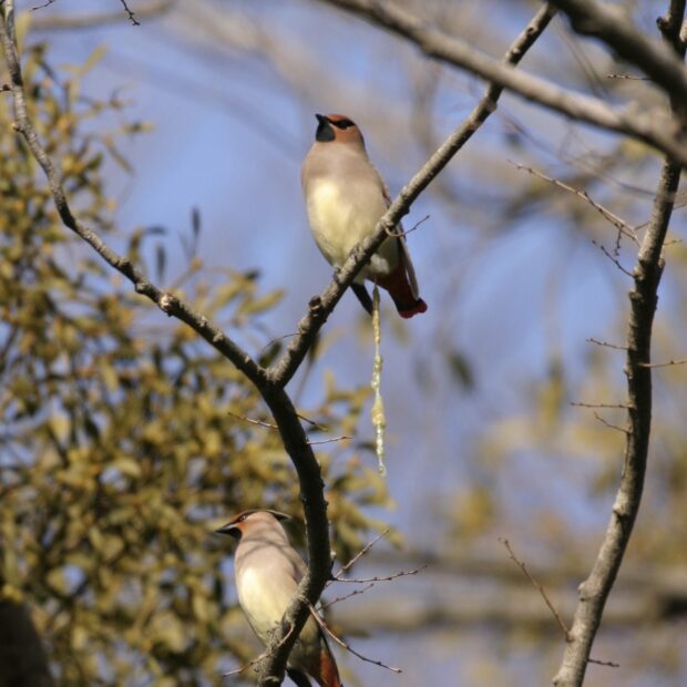 ヤドリギの実を食べた後するフンには粘り気があり、 ヤドリギの種を運ぶのに役立っています。