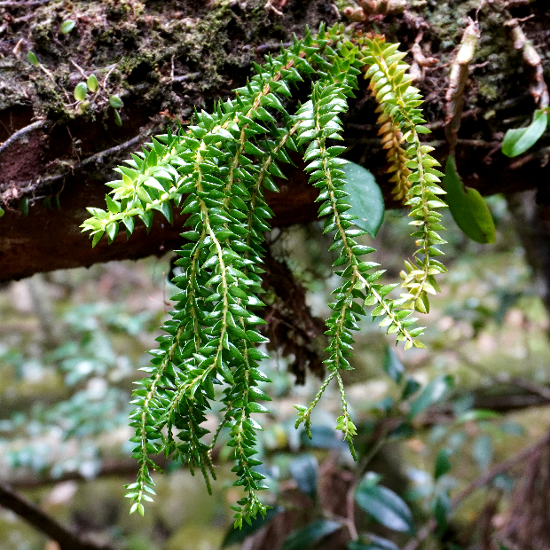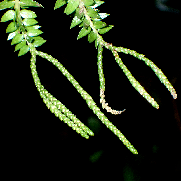 熱帯地域の木の幹から茎を垂らすシダ植物。 似たナンカクランよりも胞子のう穂は細くてはっきりしています。 名前は茎の垂れる様子が仏具の瓔珞(ようらく)とヒバ(ヒノキの仲間)に例えられたことに由来します。