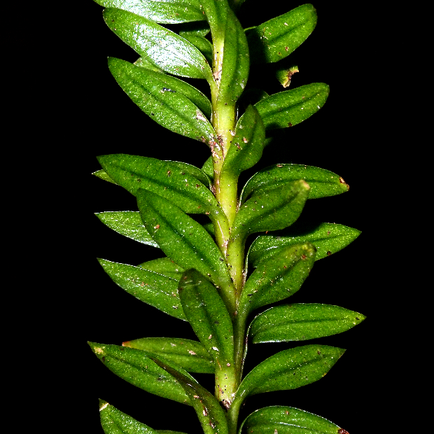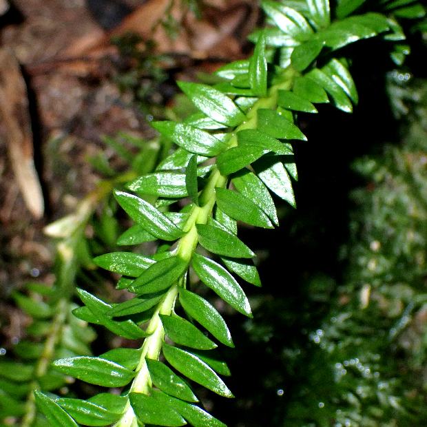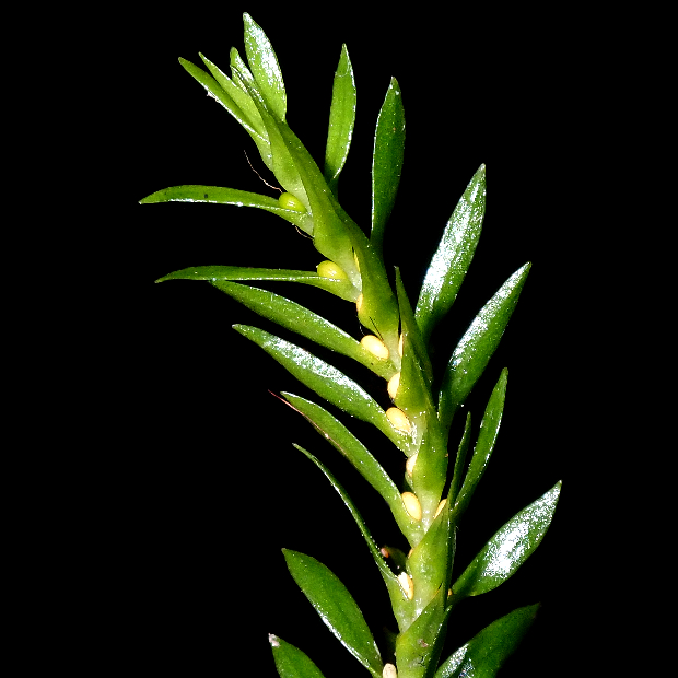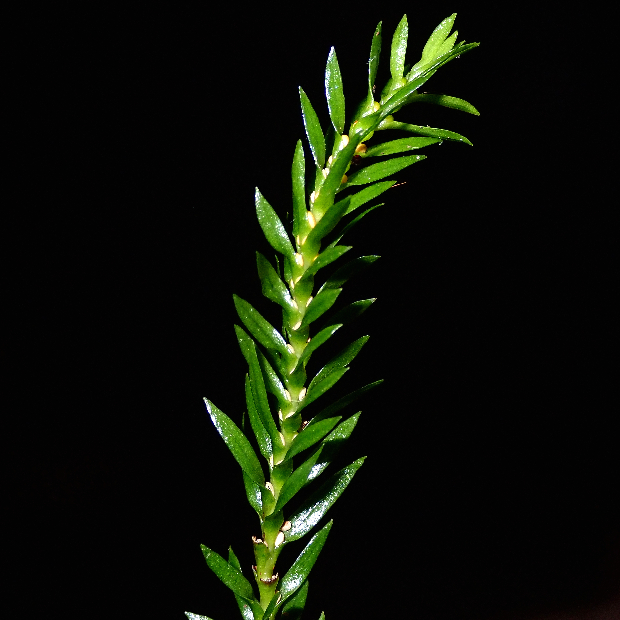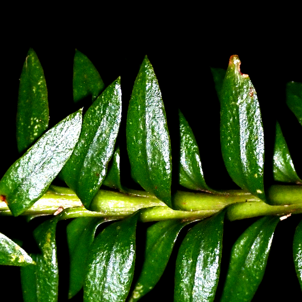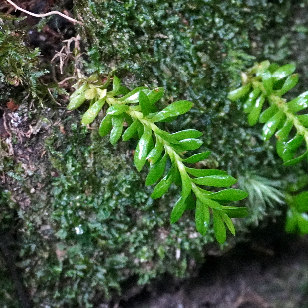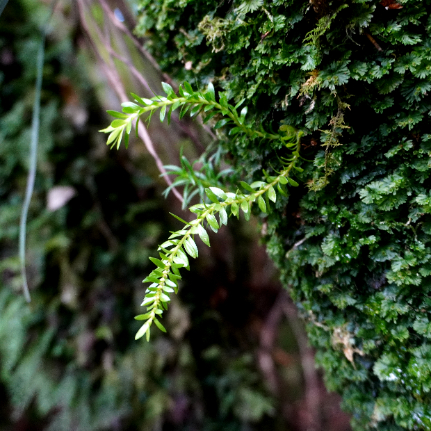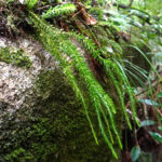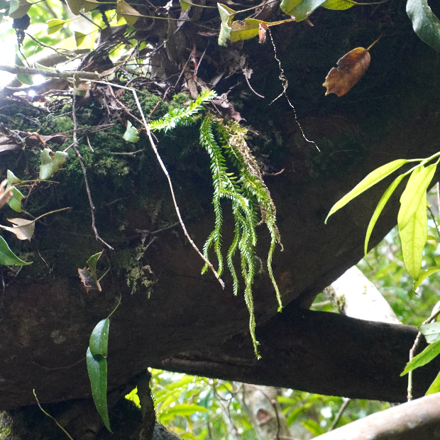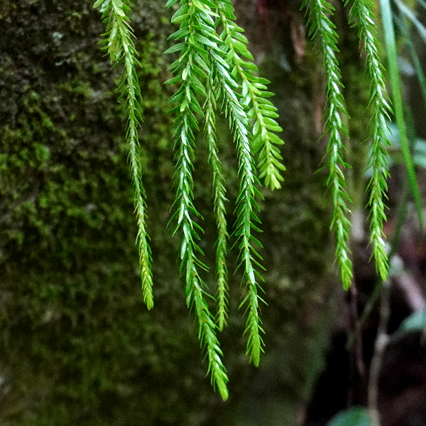 沢沿いの岩場などに茎を垂らすシダ植物。 珍種が多いヨウラクヒバの仲間の中では一番よく見られます。 ヨウラクヒバと違ってはっきりとした胞子のう穂をつけず、 葉の質は薄めです。 名前のナンカクの由来ははっきりとわかっていません。