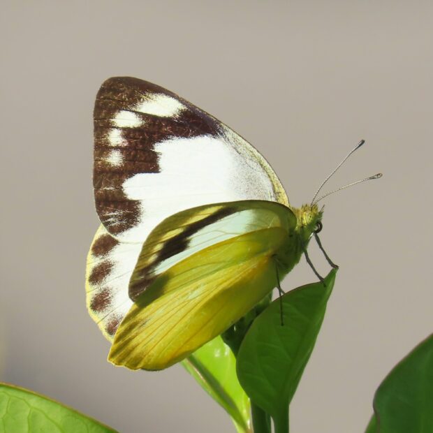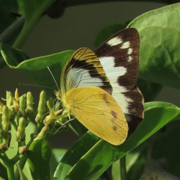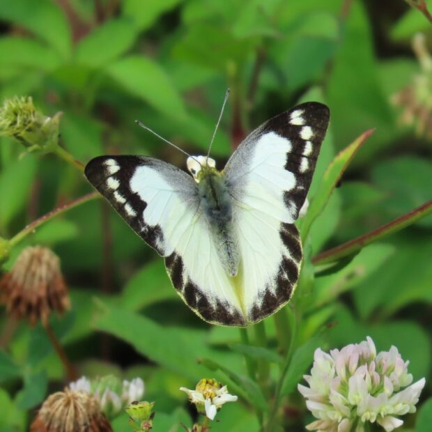 シロチョウの仲間。 明るい林縁などを敏速に飛び、 よく花にやって来ます。 名前は研究者の波江元吉氏に敬意を表し名づけられました。 もともとは八重山諸島のチョウでしたが、 今では沖縄本島の公園などで普通に見られます。