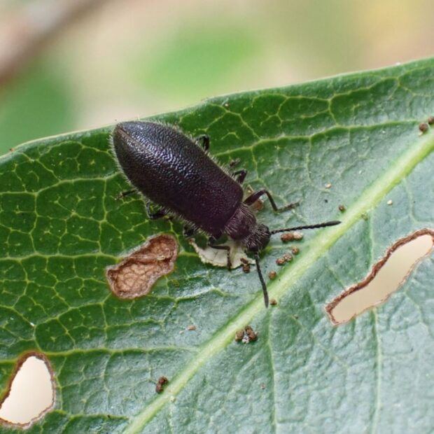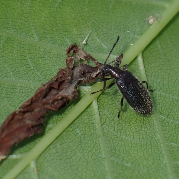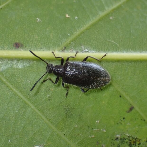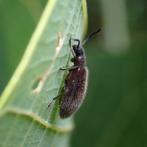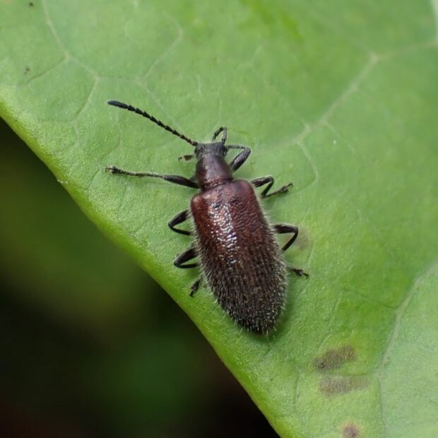 ゴミムシダマシの仲間。 体の色は、 赤茶色、 褐色、 黒色と変異が見られ、 黒色のものは青みを帯びた光沢を持つことが多いです。 背面は黄白色の毛で覆われています。 「うるま」とは、 サンゴでできた沖縄の島をさします。