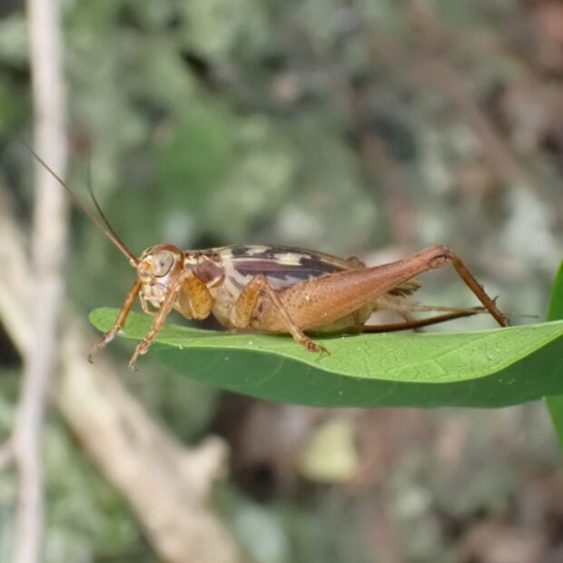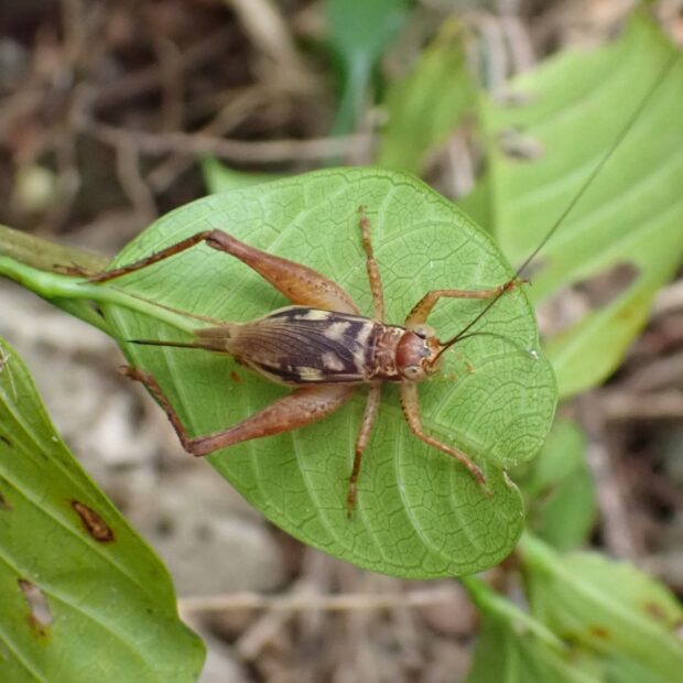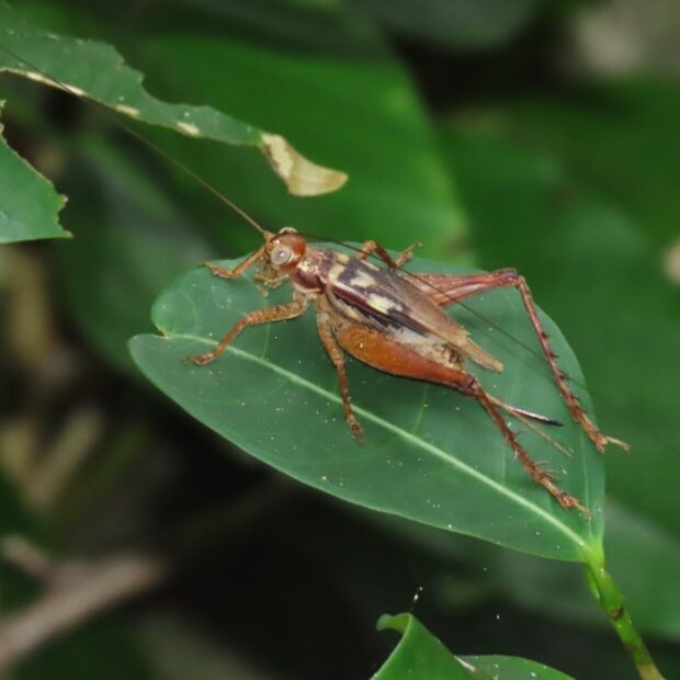 南西諸島の森にすむマツムシの仲間で普通に見られます。 別名キマダラマツムシ。 樹上性で、 さまざまな植物を食べます。 鳴き声が特徴的で「シャキシャキ」。 散髪の時のはさみの音にたとえられます。
