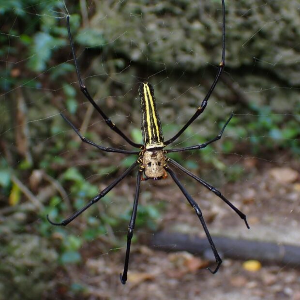 大きな網を張る日本最大のクモ
