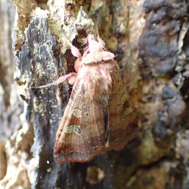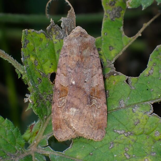 ヤガ科モンヤガの仲間。 茶色のはねに紋がありますが、 色や模様に変異が見られます。 夜行性で明りにやって来ます。 コウスチャヤガなど似ている種類がおり、 識別には注意が必要。 幼虫越冬。