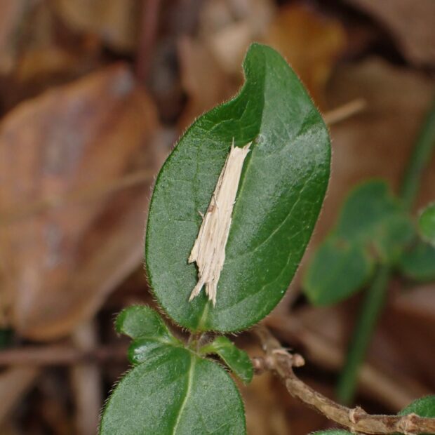 キバガの仲間。 ほっそりして小さく、 頭に毛の生えた突起のようなものがあります。 不思議な姿をしており、 じっとしていると、 小さな木のかけらに見えます。