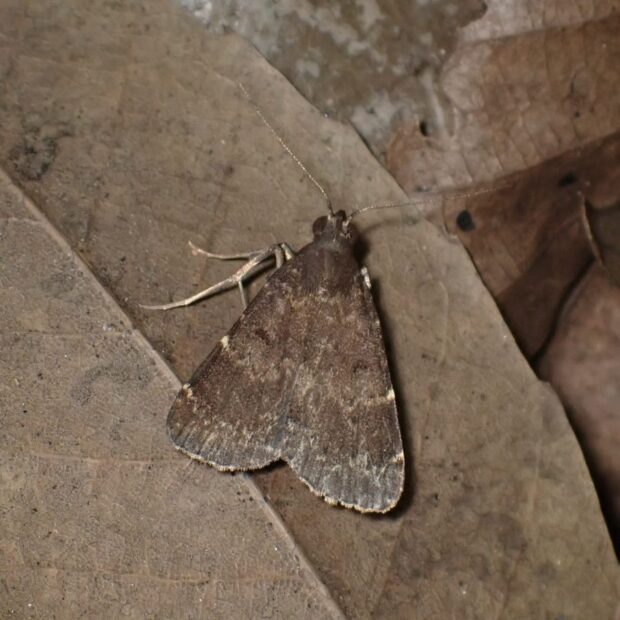 ヤガ科クルマアツバの仲間。 地味な茶色の前ばねに横帯などの模様がありますが、 変異がありさまざまです。 ヒロオビウスグロアツバに似ており、 識別は難しいです。 普通に見られ、 明かりにやって来ます。