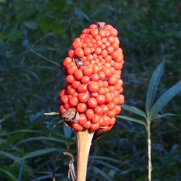 ウラシマソウと同様に、 雄株から雌株へ性転換する植物です。