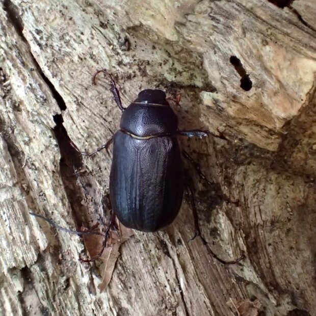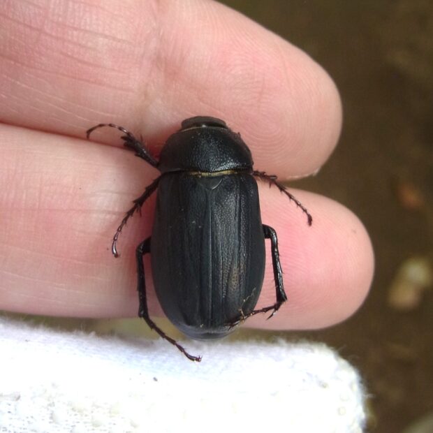普通に見られるコガネムシの仲間。 つやがなく、 黒っぽい色をしているものが多いですが、 橙色のものも見られます。 つかむとキーキー音を立てます。 クロコガネやコクロコガネに似ていますが、 本種は一回り大きく、 つやがありません。