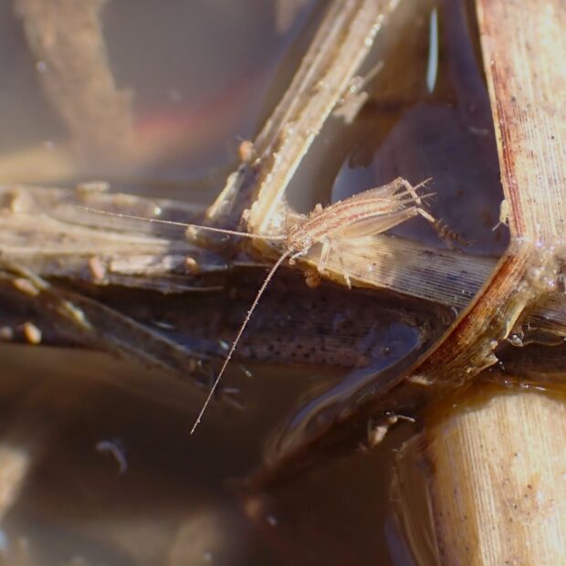 湿地や河川敷などの湿った草地を好むヒバリモドキの仲間。 オスは昼夜問わず、 「リッリッリッリー」と澄んだ美しい声で鳴きますが、 姿を見ることは難しいです。 幼虫または成虫で冬を越します。 暖地では、 年2回出現し、 秋に現れた成虫が、 そのまま冬を越すようです。