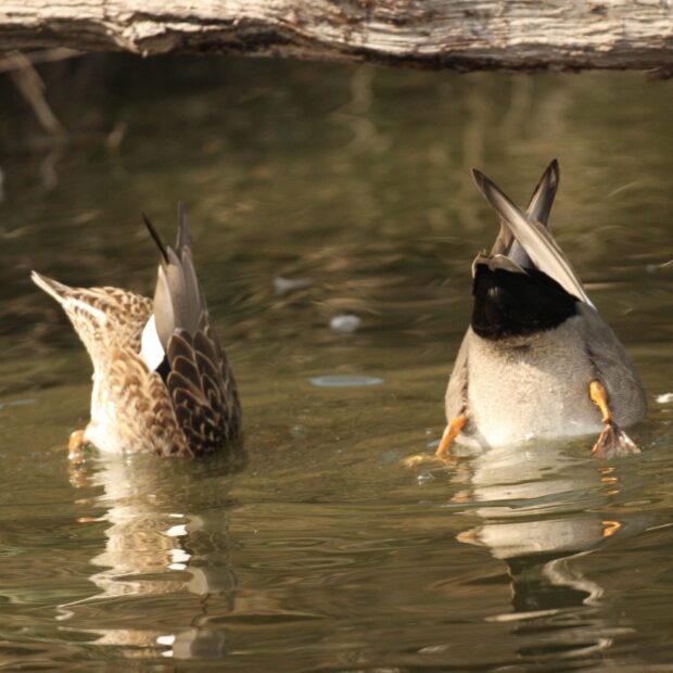 海岸や湖沼、 河川、 干潟、 水田などで観察することができます。 渡来地では、 浅瀬で逆立ちしながら主に植物の種子などを採食します。