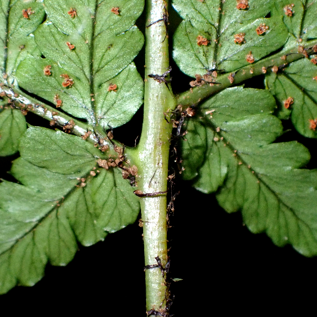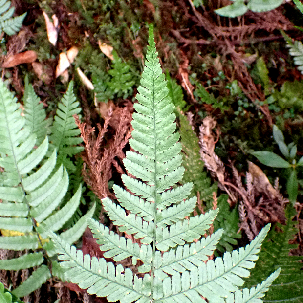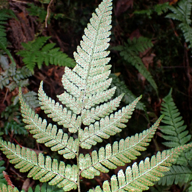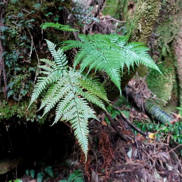 暖かい地域に生えるシダで、 日本での分布は限られます。 葉先は急に細くなり、 葉の一番下の2本の小羽片は特に長くて八の字に見えます。 名前の高砂は日本で用いられていた台湾の古い呼び名です。