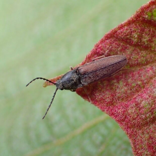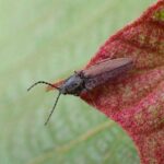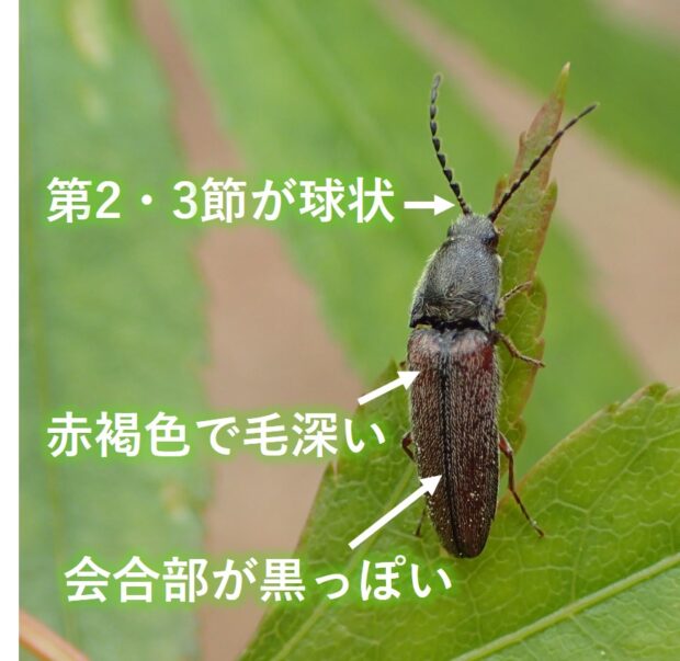 春に見られるクシコメツキの仲間。 全体に毛深く、 上翅は赤褐色です。 明かりにやって来ます。