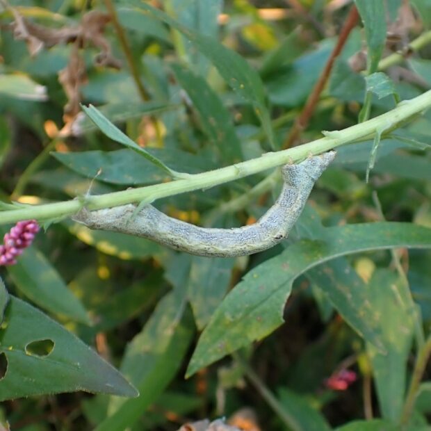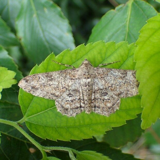 はねの色や模様はいろいろ、 個体変異が大きいエダシャクの仲間で、 普通に見られます。 前ばねと後ばねにいびつな形の紋やギザギザの線があります。 蛹で越冬し、 年3~4回発生します。