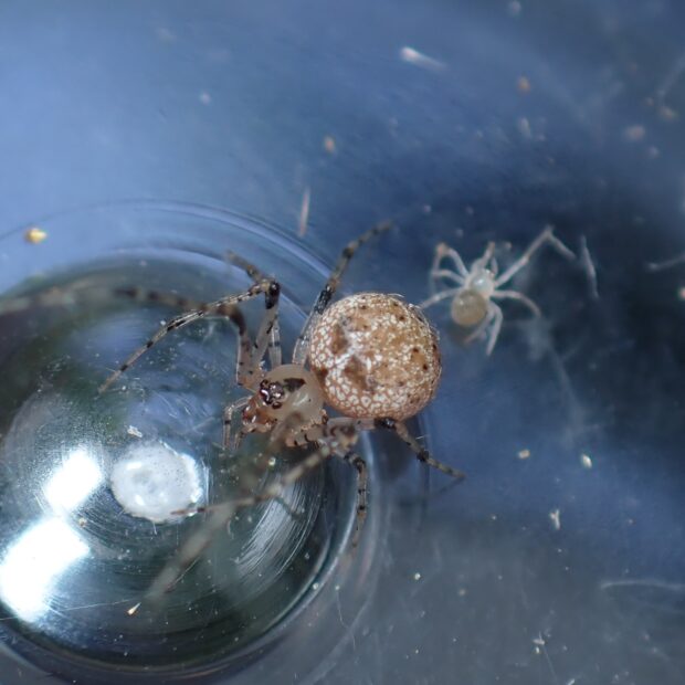 クモを襲う小さなクモ