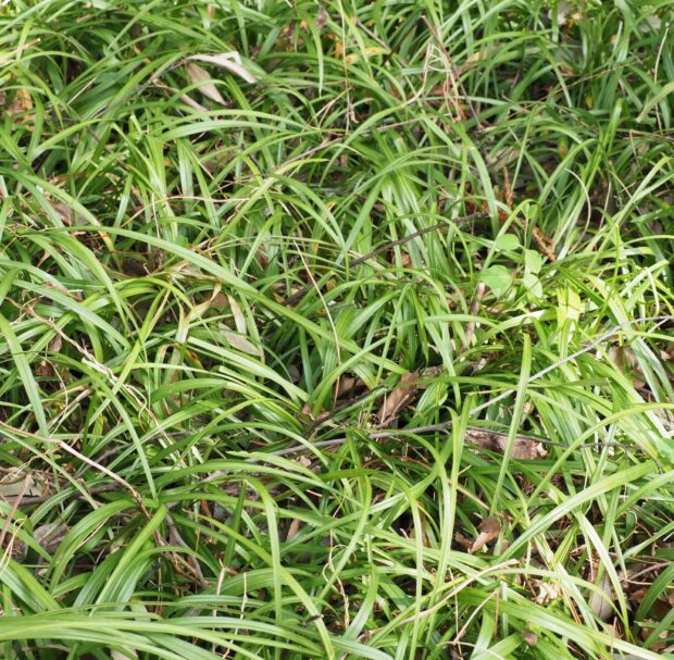 ジャノヒゲは自然の森にも生えるのですが、 庭や公園にもグランドカバー(地面を覆うために植えられる草や木)としてよく植えられます。