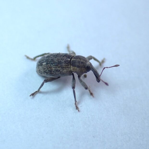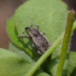 田んぼやその周辺で見られるイネゾウムシの仲間。 イネなどの展開前の新しい葉を食べ、 葉に穴をあけます。 はねに白い点があるものが多いですが、 点がないものもいます。 幼虫または成虫で越冬します。