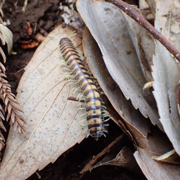 茨城県と千葉県で記録されているヤスデ。 春に見られることが多いですが、 秋に見られることもあります。 ヤスデは落ち葉などを食べ、 分解者としての役割を担っている土壌動物です。 千葉県のレッドデータブックで最重要保護生物に指定されています。