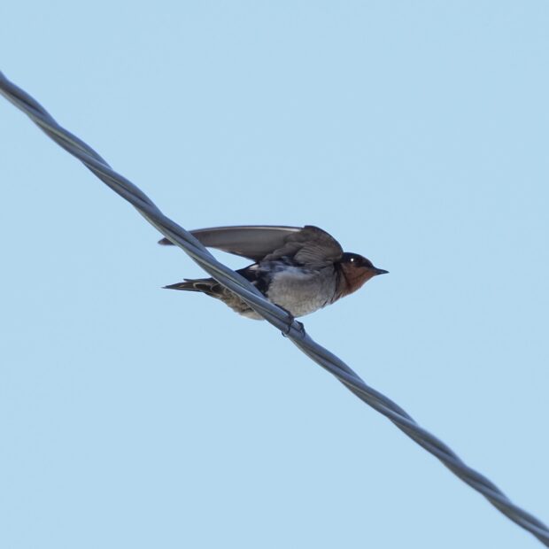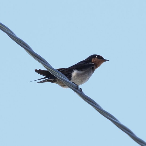 本州にいるツバメとよく似ていますが、 本種は腹部の色が茶色みがかり、 尾羽が短いのが特徴です。