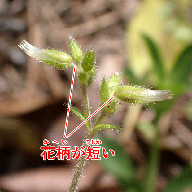 ミミナグサが似ていますが、 以下の点で簡単に見分けられます。