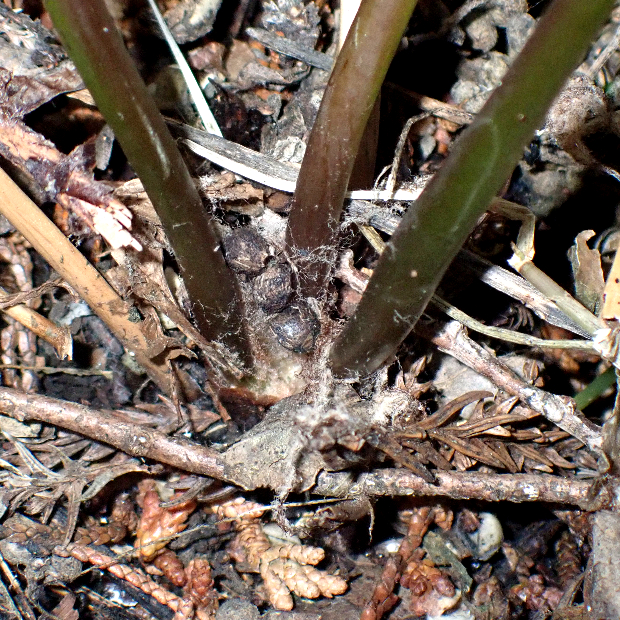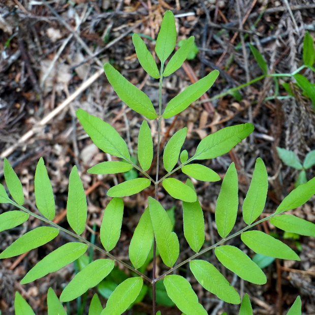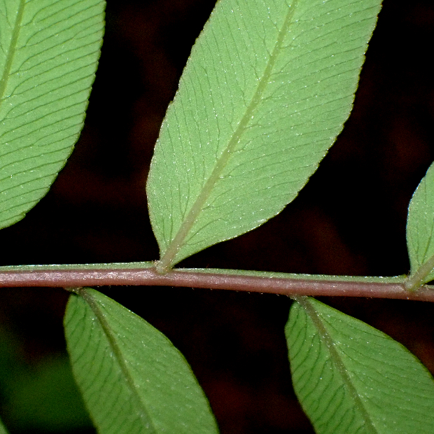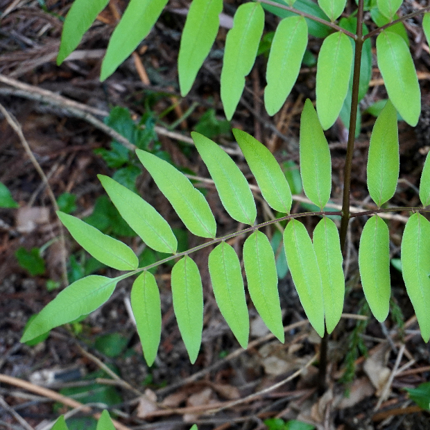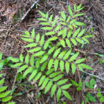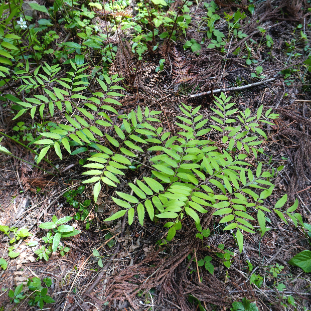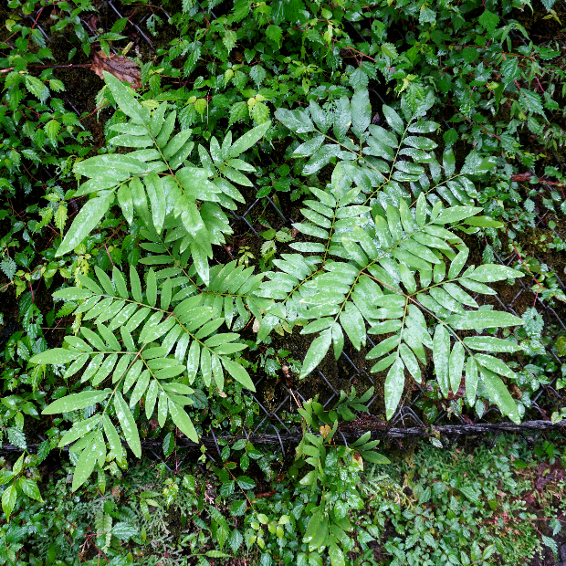 山菜で有名なゼンマイとヤシャゼンマイの雑種と考えられているシダ。 ヤシャゼンマイが渓流沿いに生えるので、 その近くで見られることが多いです。 それぞれの長い卵のような形をした小羽片の基部は、 角度が90度くらいで、 両親の中間くらいなことが良い見分けポイントです。