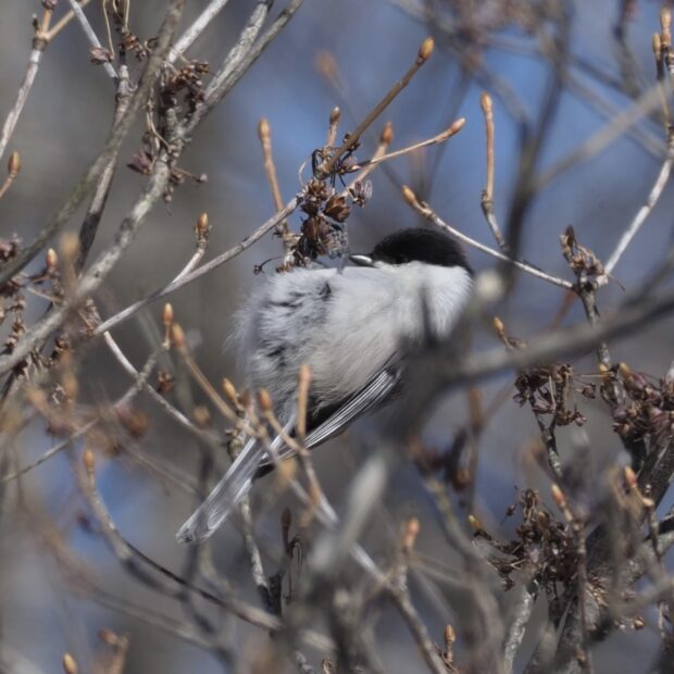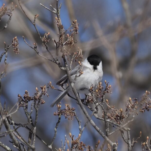 ヒガラやシジュウカラとの違いは、 頬の白い模様が、 首の白い部分と繋がっている部分で、 大きさは、 シジュウカラよりも若干小さく、 ヒガラよりもわずかに大きいです。