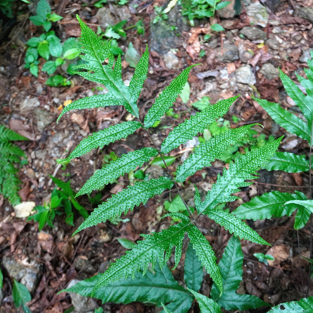 羽片の数がカレンコウアミシダやミカワリシダよりも多く、 5対以上ある。