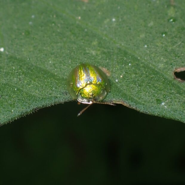金緑色に輝く小さなカメノコハムシ