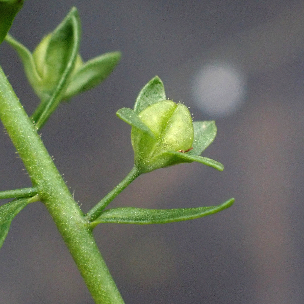 これは昆虫に寄生された虫こぶ(カワヂシャツボミタマフシ)。 寄主はムシクサにも寄生するムシクサコバンゾウムシ?
