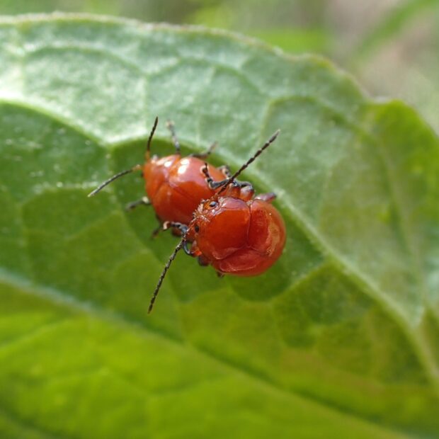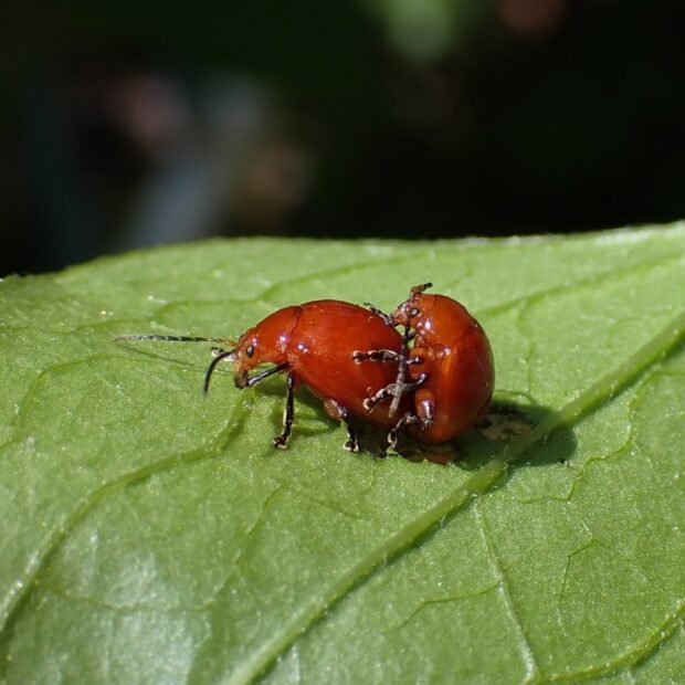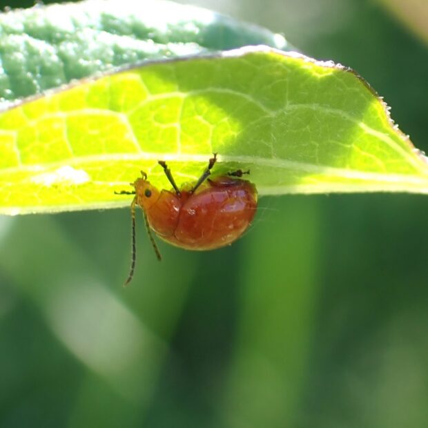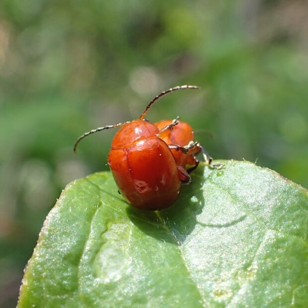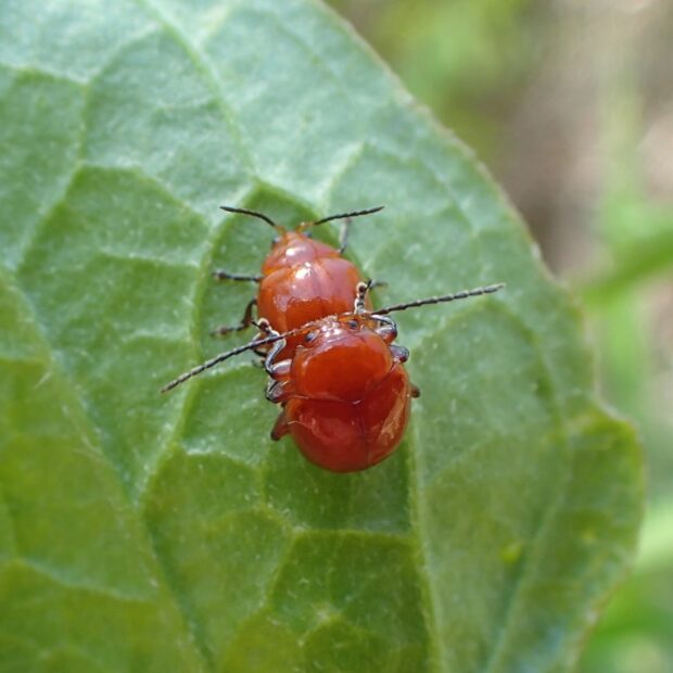 オレンジ色の丸っこいノミハムシ