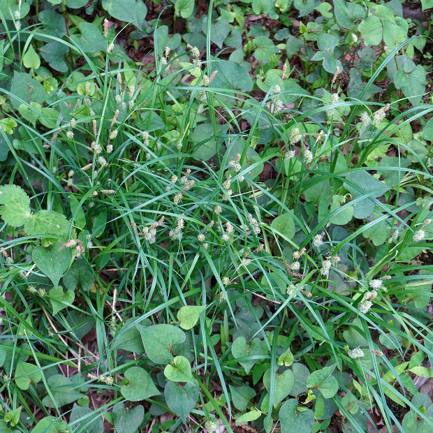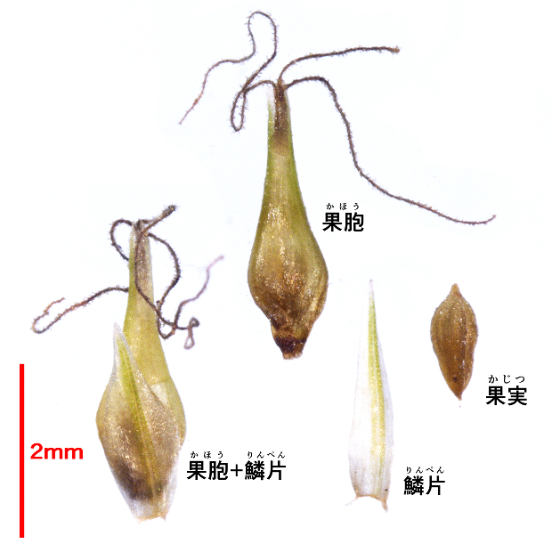 都市公園にも多いスゲの仲間。 大きな特徴は雌小穂に長く残る細長い柱頭で、 モジャモジャがよく目立ちます。 名前の由来ははっきりとしていませんが、 細長い茎が竹ひごに例えられたからだという説があります。