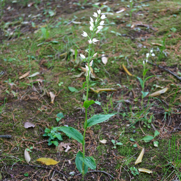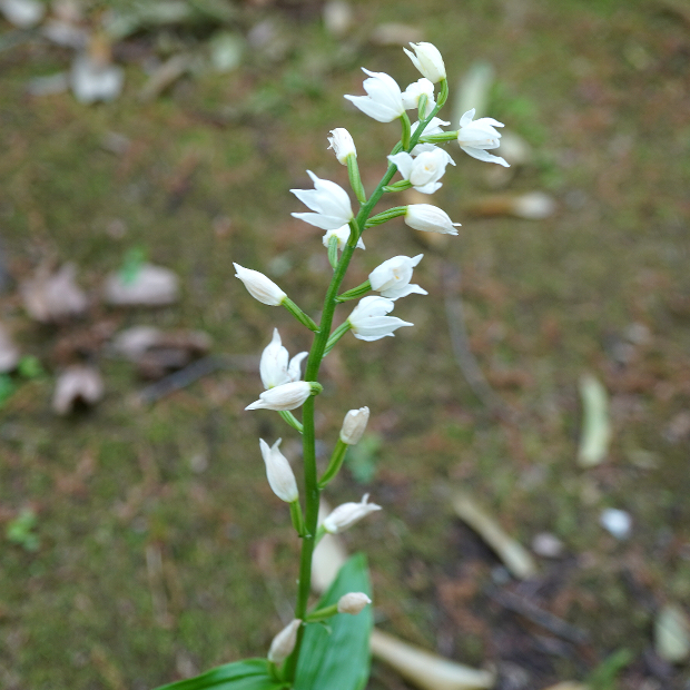 春の雑木林や松林に生える白花のランの仲間。 花の下の距がとても短いこと、 古い花は茶色っぽくなることなどが本種の特徴です。 近年分布を拡大しつつあるといわれ、 新たな産地が次々に見つかっています。 名前は最初に見つかった神奈川県の鵠沼(くげぬま)に由来します。