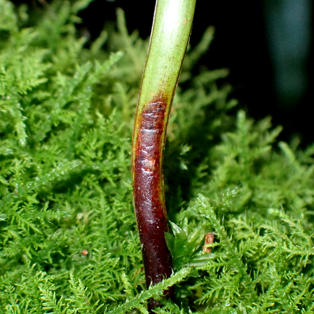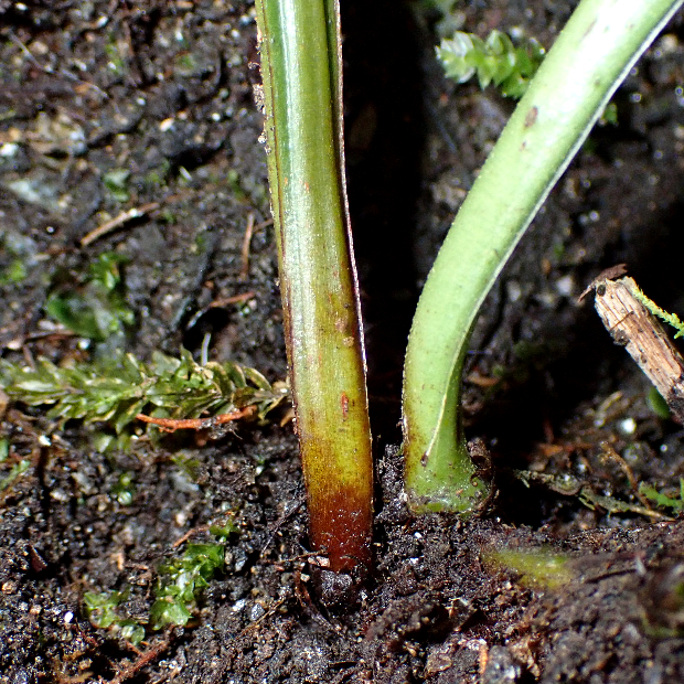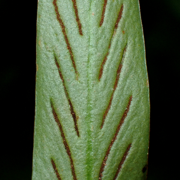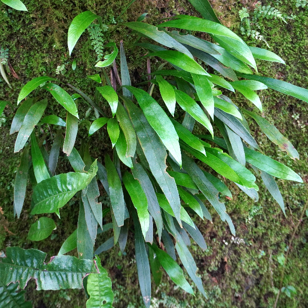 匙(さじ : スプーン)に例えられた形のシダ。 葉は革のようで、 葉裏にハの字に胞子のう群をつけます。 イワヤナギシダに似ていますが、 柄の部分が濃い赤紫色をしています。 また、 ヒメサジランよりは、 はるかに大きくなります。