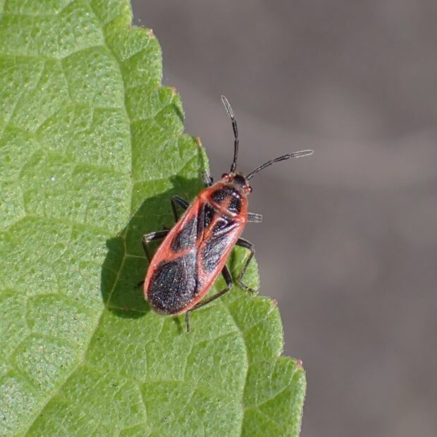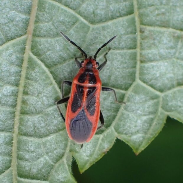赤と黒のツートンカラーが美しいカメムシ