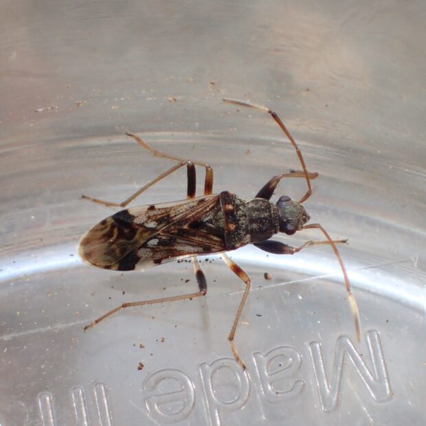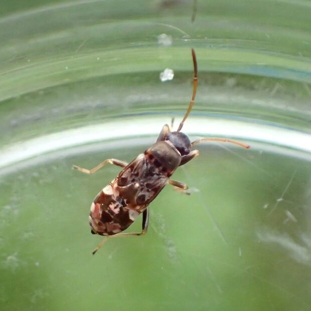 ヒョウタンナガカメムシの仲間。 メヒシバ、 エノコログサなどイネ科植物で普通に見られ、 明かりにもやって来ます。