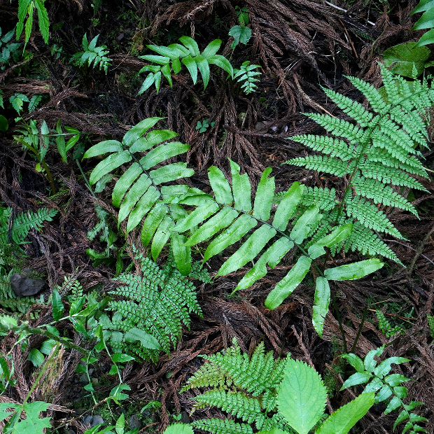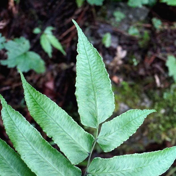 まれに見られるシダ。 一番の特徴は葉裏の胞子のう群で、 茶色く熟しているときはソーセージに見えます。 イワヤは愛媛県中部の岩屋寺で発見されたのが由来で、 日本のイワヤシダ科は本種だけです。